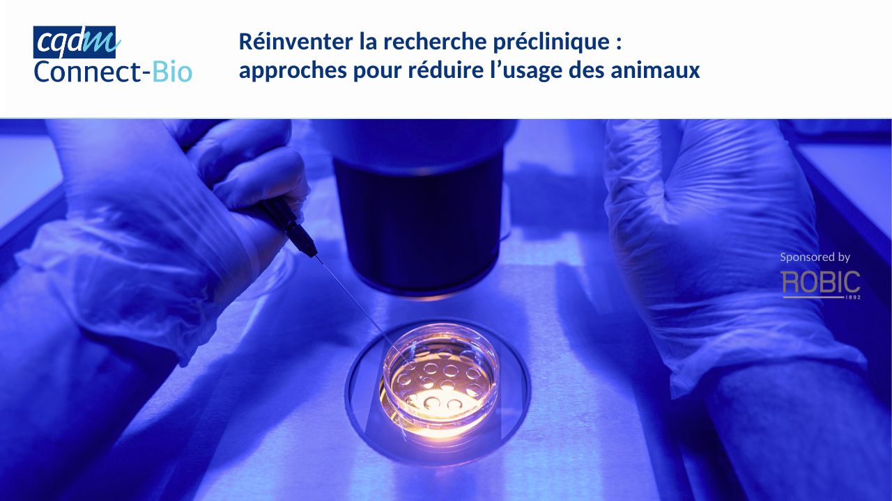 Le CQDM vous convie à son prochain Connect-BIO, un événement incontournable réunissant chercheurs et entrepreneurs autour de l’avenir de la recherche préclinique, orientée vers des approches innovantes et responsables visant à réduire le recours aux animaux.